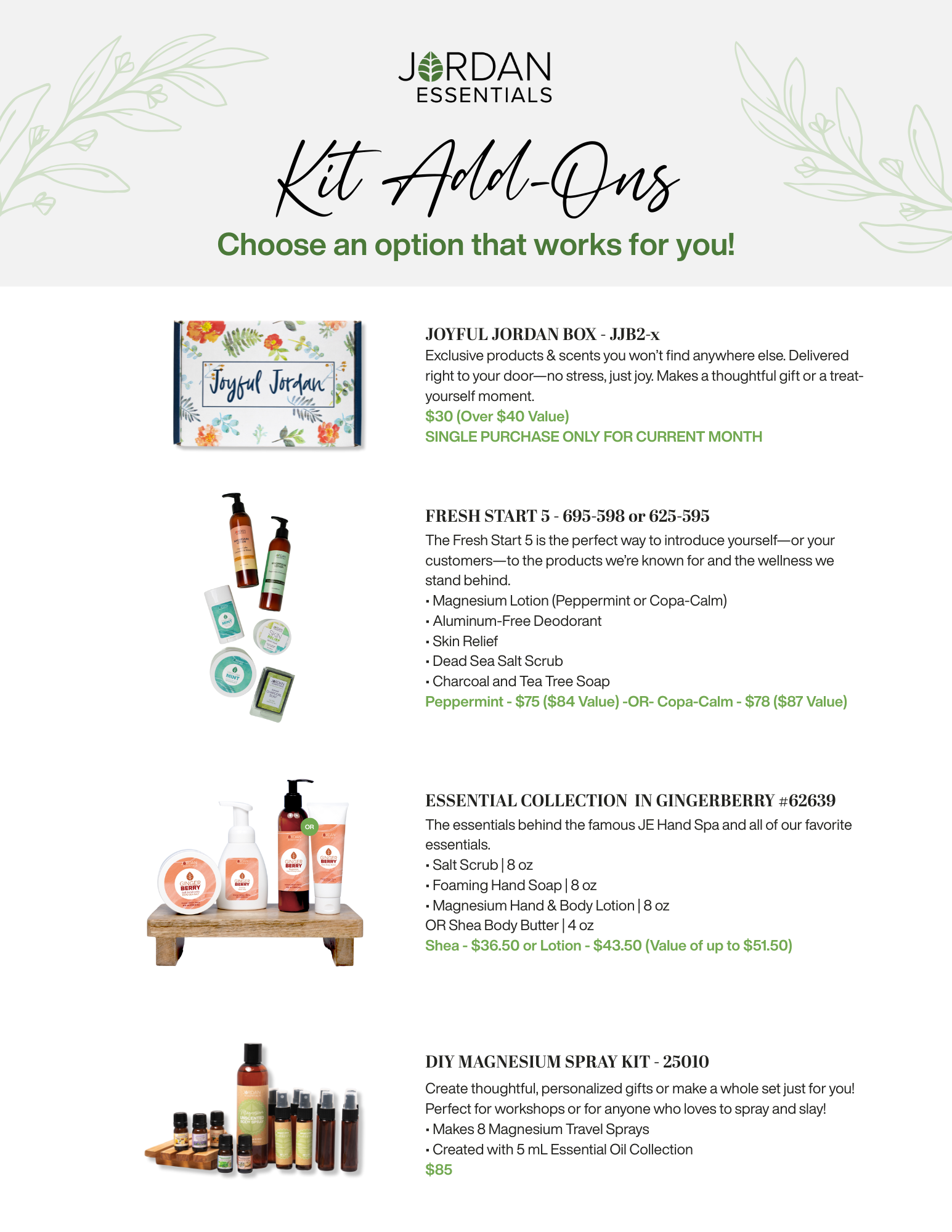 Additionally, you can customize your start as a Jordan Essentials Consultant with our stylized "Journeys” and Add-On Collections: the Health & Wellness Box and Face Care Collections are just a few examples. Each of these add-ons focuses on specific areas to help you build and personalize your business.